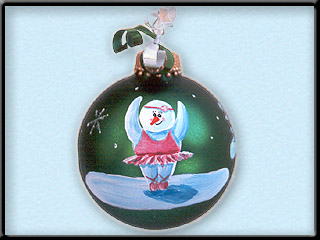 This design features a snowlady dancing.  Dressed with a tutu and ballet shoes.  Even a hair piece.