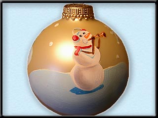 snowman or snowlady playing some Christmas tunes in the snowy