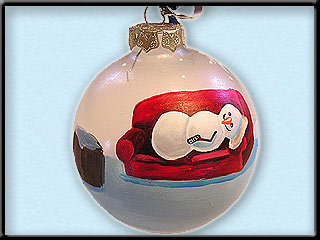 snowman or snowlady just hanging out or laying around on the sofa watching