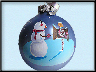 The ornament can be personalized with a message of choice (Normally Name and Date) on the back side of the bulb, or a message on the front under the snowman.