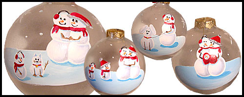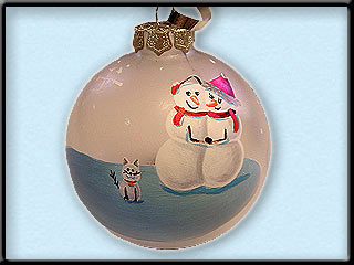 side of the bulb, on the front under the snowman.