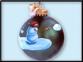 snowman or lady playing football wearing a red helmet with a green Christmas