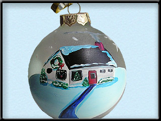 The ornament can be personalized with a message of choice (Normally Name and Date) on the back side of the bulb, or on the front under the house in the snow.