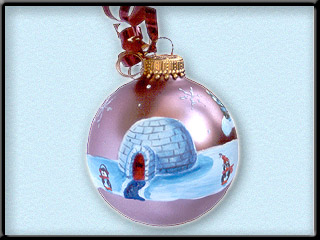 This design features an igloo and two penguins.
