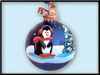 The ornament can be personalized with a message of choice (Normally Name and Date) on the back side of the bulb, on under the penguin: