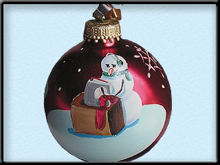 side of the bulb, or on the front under the snowman.