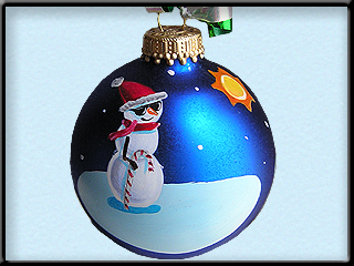 The ornament can be personalized with a message of choice (Normally Name and Date) on the back side of the bulb, or a message on the front under the snowman.