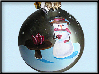 The ornament can be personalized with a message of choice (Normally Name and Date) on the back side of the bulb, or on the front under the snowman.