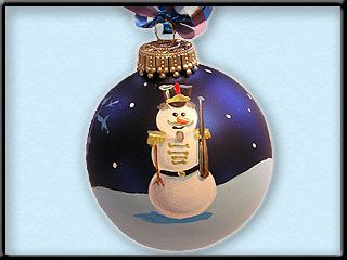 The ornament can be personalized with a message of choice (Normally Name and Date) on the back side of the bulb, or a message on the front under the snowman.