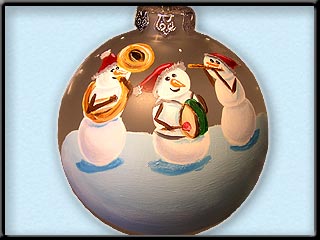 snowmen or snowladies in a band playing some festive Christmas