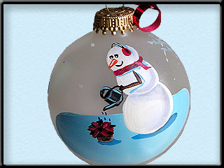 snowman or lady watering her poinsettia.